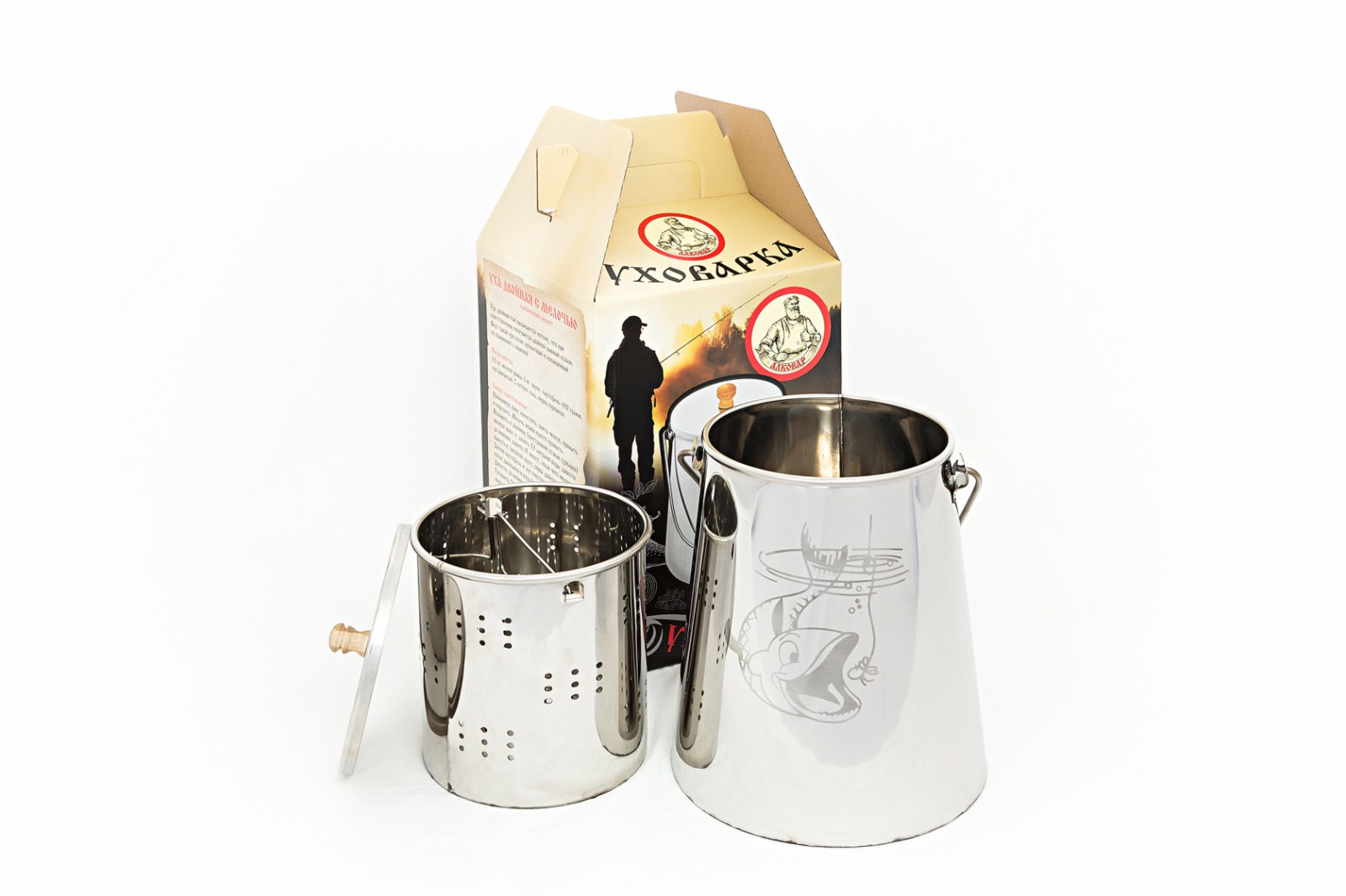С помощью стакана-сито который вставляется в уховарку Вы с легкостью приготовите вкусную уху с наваристым бульоном из семги, щуки, карпа, сома и любой другой рыбы. Затем можете вытащить рыбу из уховарки не оставив там косточек.