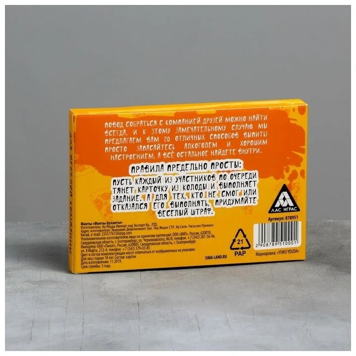 Купить игра для компании "фанты буханты" 20 карт от 100 руб. с доставкой до пункта выдачи в Абдулино. Интернет магазин ДекаМаркет. Оплата при получении.
